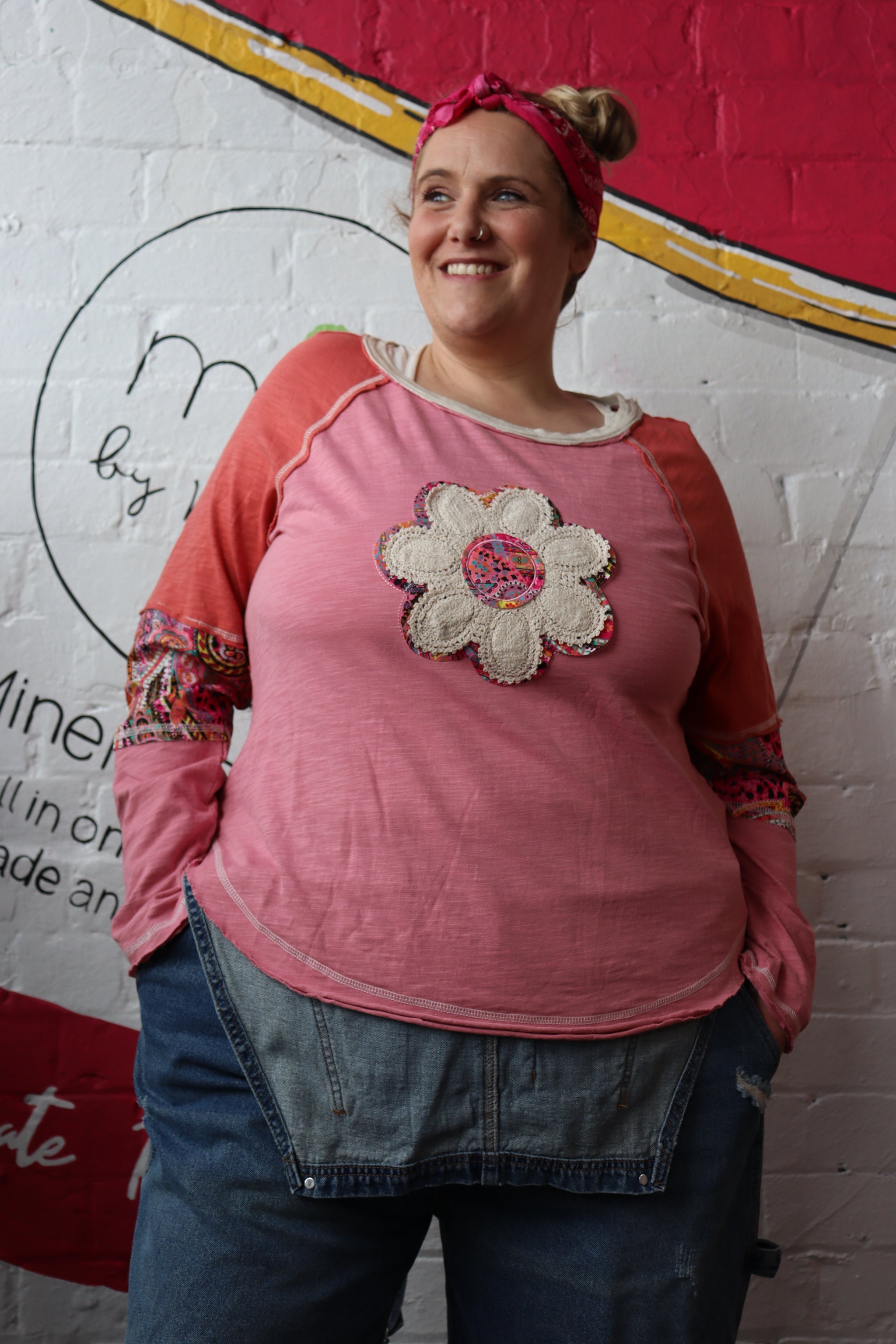 Patchwork Flower Long Sleeve Top – Pink & Coral