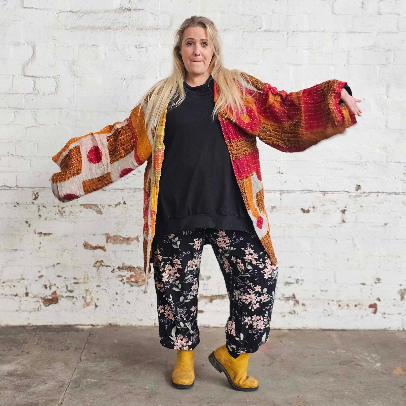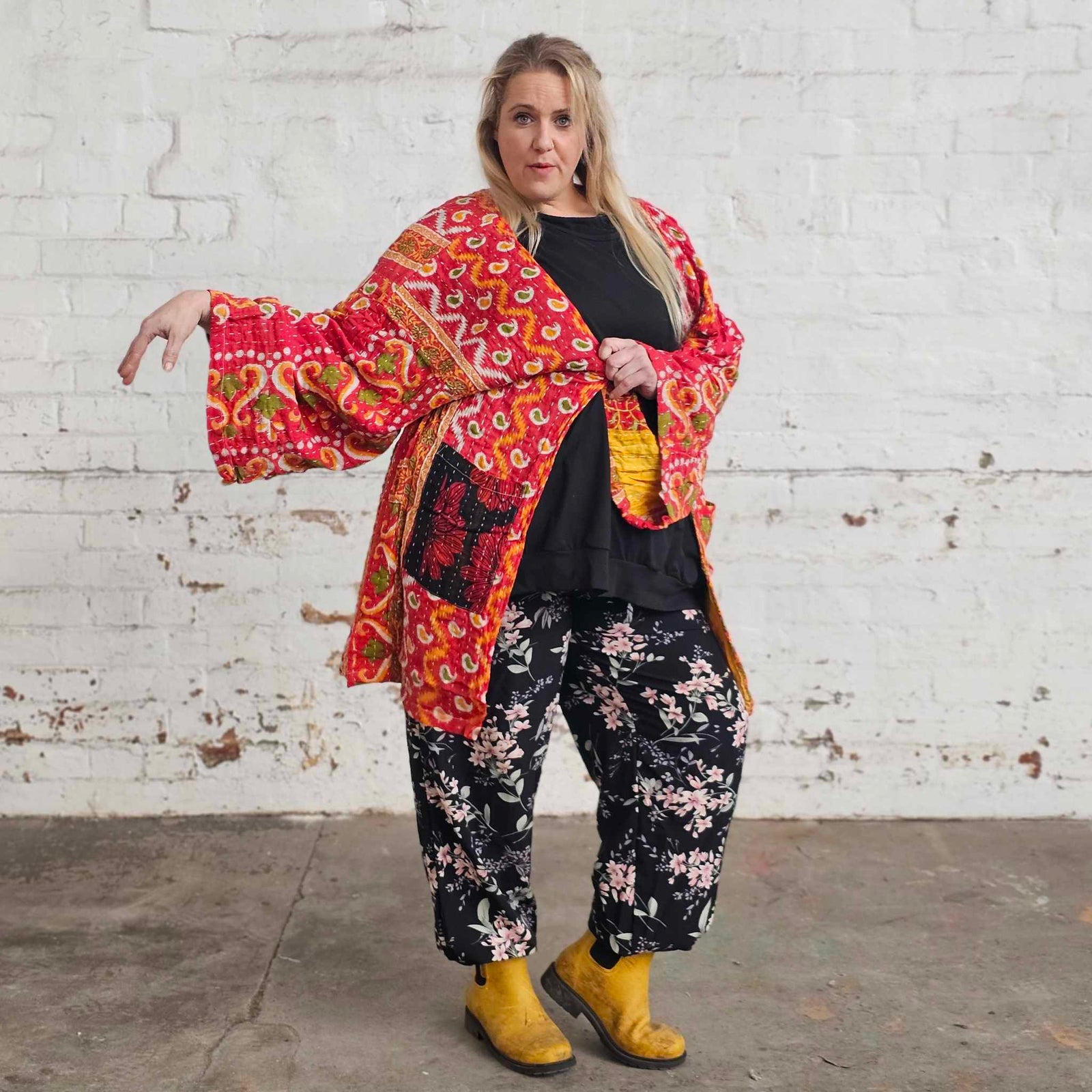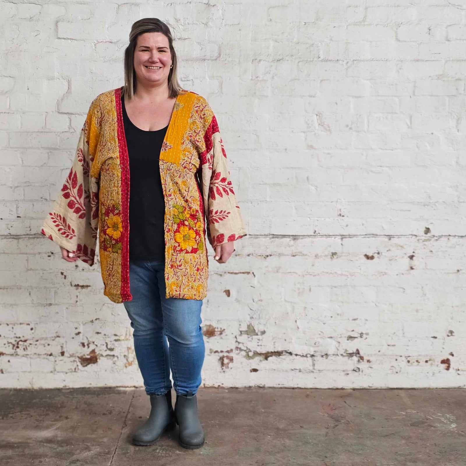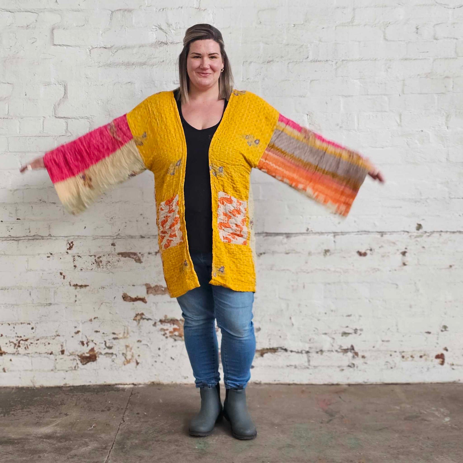 $120.00 AUDYELLOW ON YELLOW Vintage Kantha Kimono
