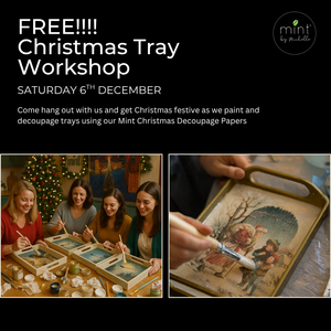 Come get Christmas festive with us at Mint HQ @ 68 Mercer Street, Geelong ✨Join our creative crew for a fun, hands-on morning of painting and decoupaging trays using our beautiful Mint Christmas Decoupage Papers — featuring vintage Santa scenes, angels, snowy nights, and all the cozy holiday feels.